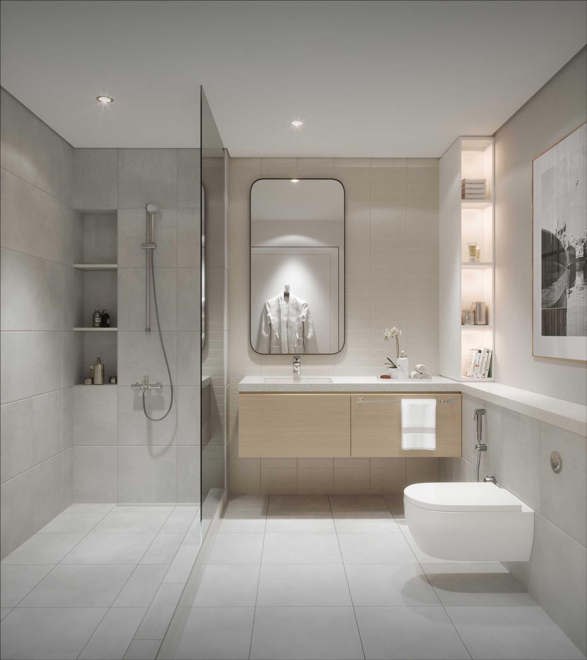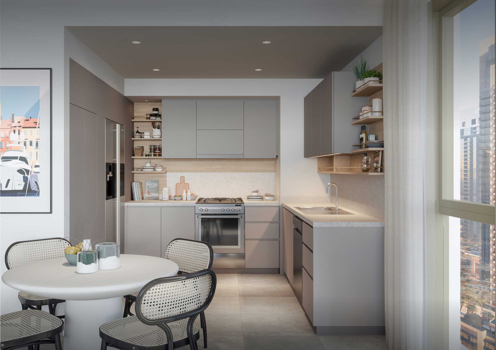 Fully fitted kitchens and bathrooms, built in wardrobes, and select units with staff rooms and private terraces offering creek and skyline views.